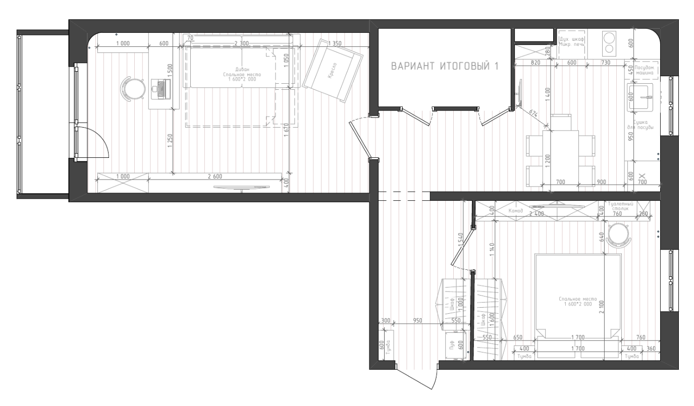 Перед нами стояла обычная задача: из стандартной киевской планировки в Ноябрьске сделать что-нибудь не совсем стандартное, не двигая при этом стены. И вот что у нас в итоге получилось.